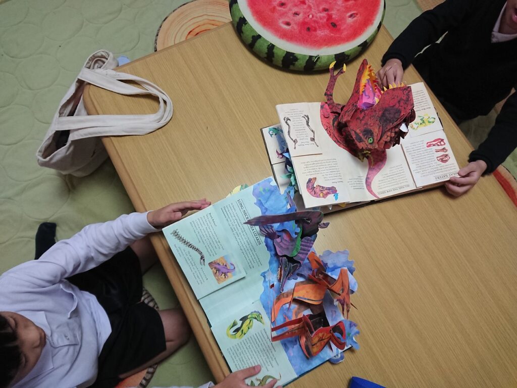 また、はぴちるの教室内にも貸出本を並べており、子どもたちの楽しみになっています。